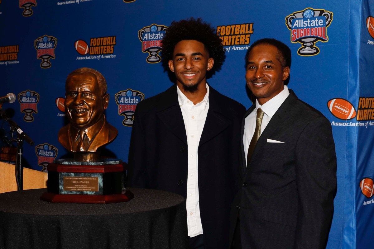 000023eddie robinson award 010519 Published January 23, 2019 at 3600 × 2400 Eddie Robinson IV (left) and Eddie Robinson III (right) pose with the FWAA Eddie Robinson Coach of the Year Bust. (Photo by Melissa Macatee)