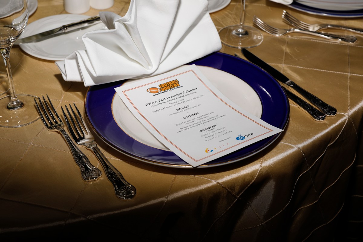 00005FWAA Past Presidents dinner 010518 Published January 15, 2018 at 1800 × 1200 Place setting at the Past Presidents Dinner. Photo by Melissa Macatee.