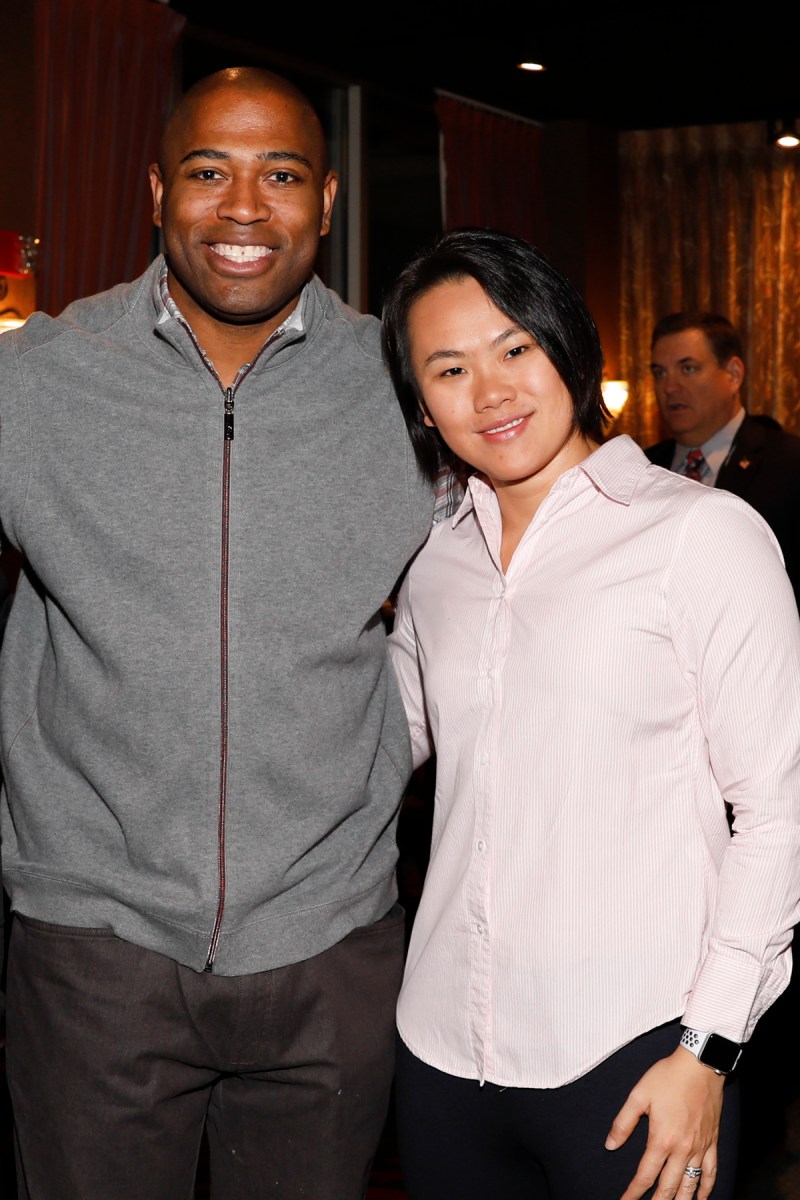 00025FWAA awards breakfast 010817 Published January 15, 2018 at 1200 × 1800 Former Alabama star Shaun Alexander and FWAA 2018 President Stefanie Loh. Photo by Melissa Macatee.