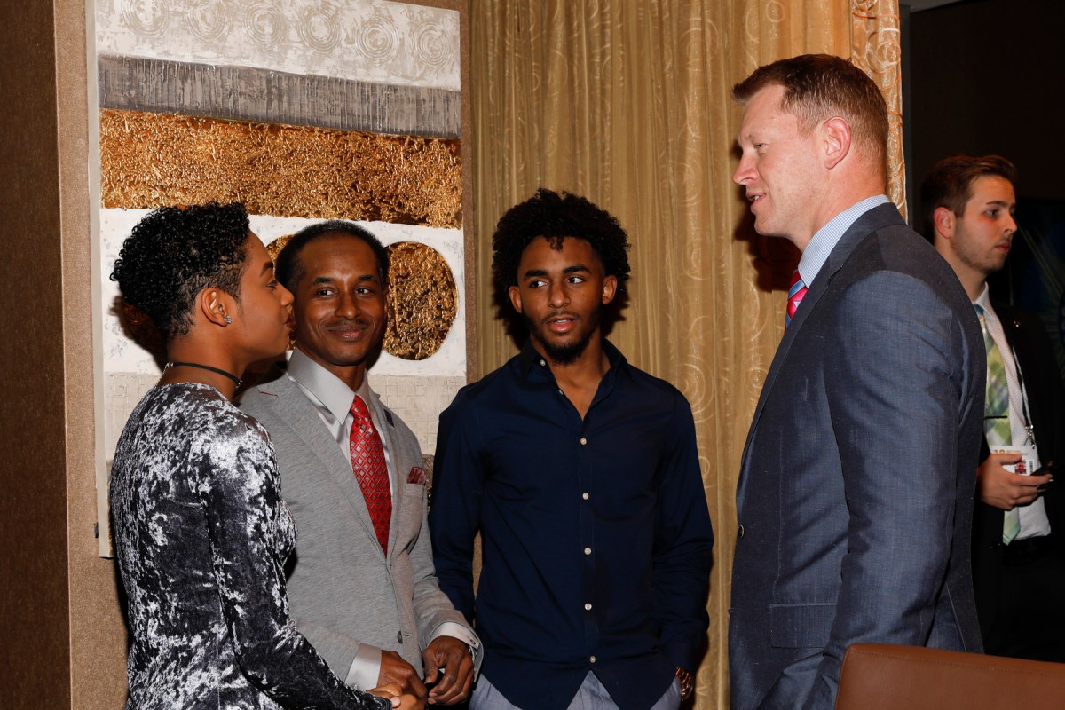 00036eddie robinson award 010618 Published January 15, 2018 at 1800 × 1200 Left to right, Chloe Robinson, great-granddaughter of the award’s namesake, her father Eddie Robinson III and Eddie Robinson IV chat with 2017 FWAA Eddie Robinson Coach of the Year Scott Frost. Photo by Melissa Macatee.