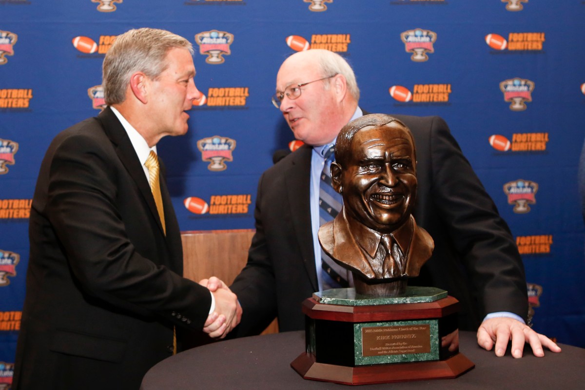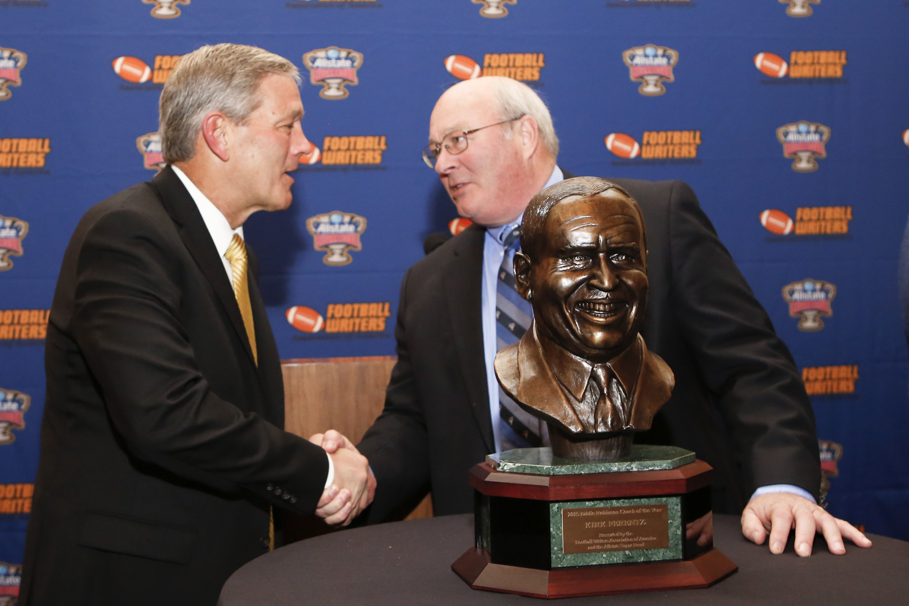 00107eddie robinson award 010916 Published January 18, 2016 at 1800 × 1200 Iowa Coach Kirk Ferentz, winner of the Eddie Robinson Coach of the Year Award, shakes hands with Sugar Bowl CEO Paul Hoolahan. Photo by Melissa Macatee.