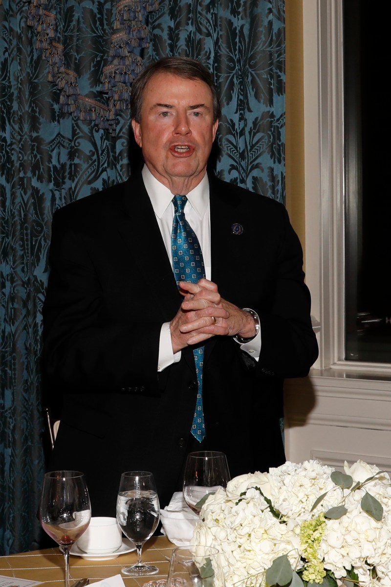 00107FWAA Past Presidents dinner 010518 Published January 15, 2018 at 1201 × 1800 National Football Foundation President and CEO Steve Hatchell addresses the audience. The NFF sponsored the dinner. Photo by Melissa Macatee.