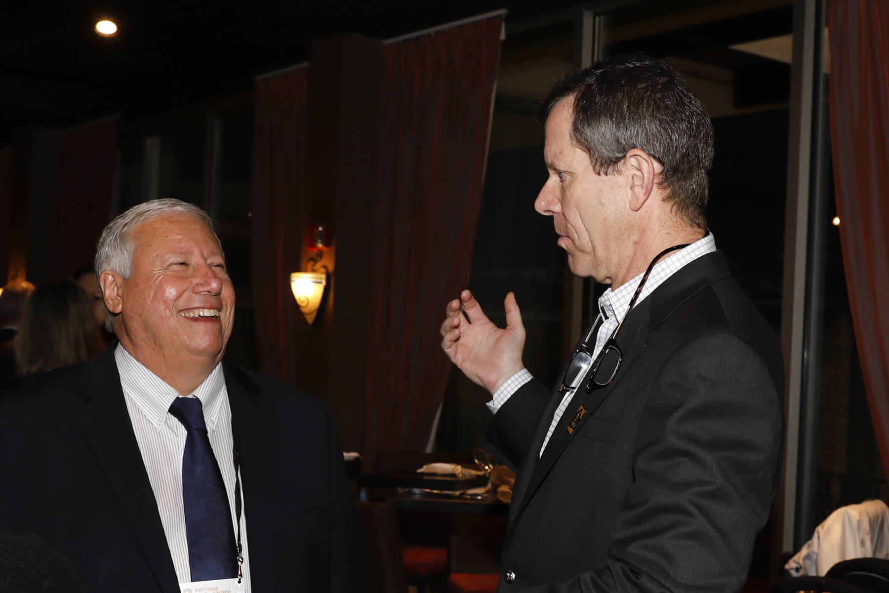 00267FWAA awards breakfast 010817 Published January 15, 2018 at 1800 × 1201 Mike Finn, winner of the FWAA Lifetime Achievement Award, chats with Past President Ivan Maisel. Photo by Melissa Macatee.