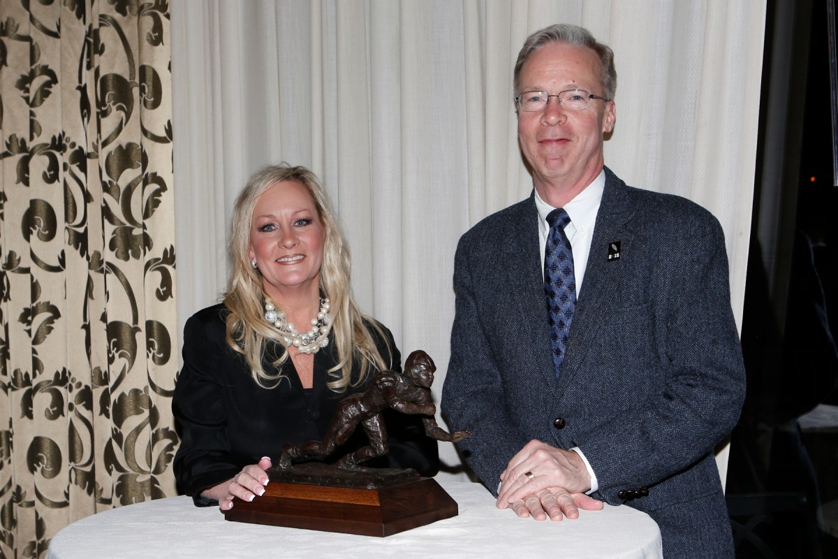 0040fwaa past presidents dinner 010915 Published January 17, 2015 at 1800 × 1200 Margaret Mason and Malcolm Moran with the Outland Trophy.