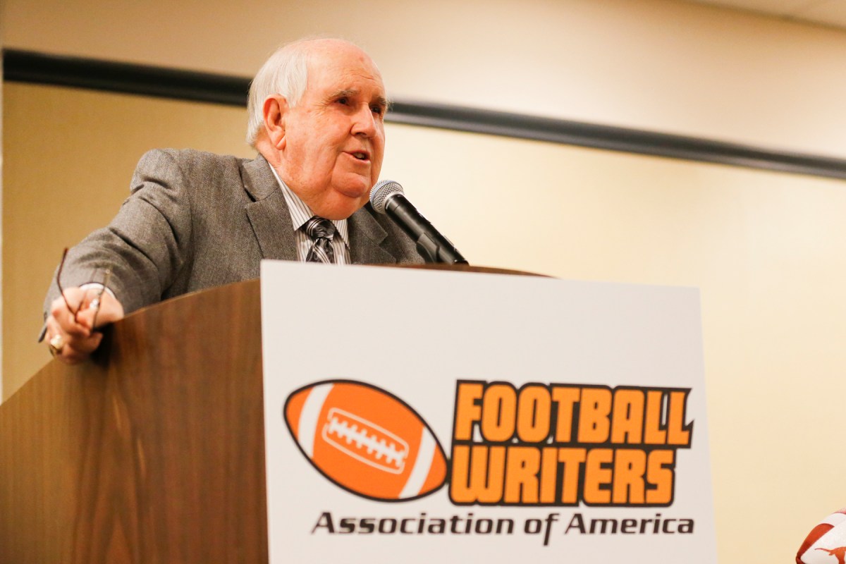 0072FWAA_breakfast011315 Published January 15, 2015 at 1800 × 1200 Former Texas SID Bill Little addresses the membership. Photo by Melissa Macatee. 2015 January 13; The Football Writers Association of America held its annual Awards Breakfast in Dallas, Texas at the Renaissance Hotel. Photo by Melissa Macatee