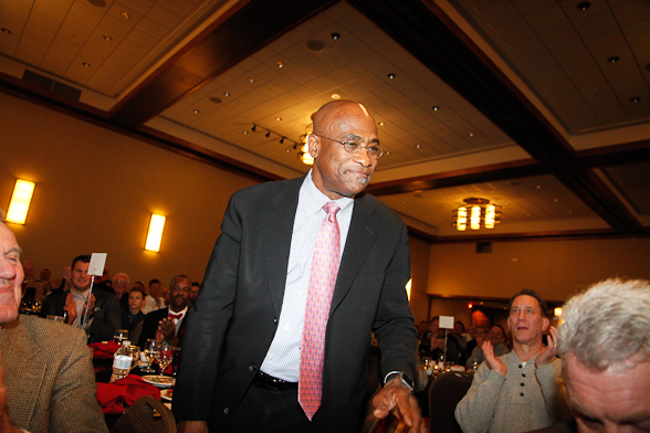175_mg_2012 Published January 27, 2017 at 588 × 392 Former Oklahoma running back Joe Washington stands to acknowledge the crowd after being introduced at the Outland Trophy Presentation Banquet on Jan. 11, 2017, in Omaha. Photo by C41 Photography.