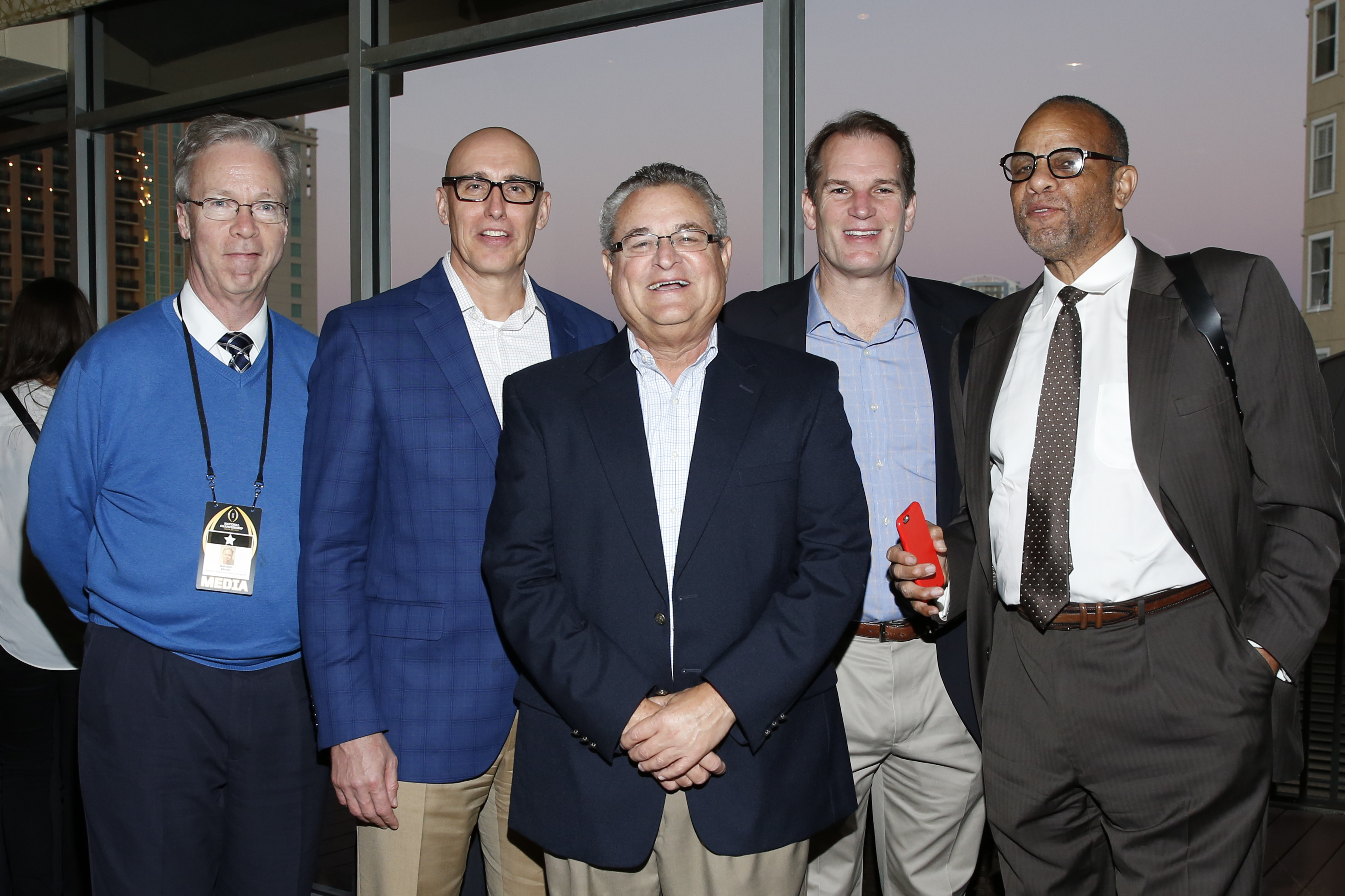 Left to right: Malcolm Moran of the National Sports Journalism Center at IUPUI, Bob Burda of the Big XII, Larry Wahl of the Orange Bowl, Dave Hirsch of the Pac 12 and journalist Bill Rhoden at the Eddie Robinson Coach of the Year Reception on Jan. 7, 2017, in Tampa. Photo by Melissa Macatee.