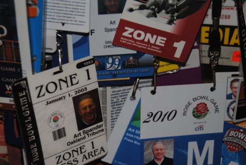 Spander has a cabinet filled with press passes from various media outlets that have credentialed him to file stories under the dateline: “PASADENA.”