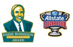 “The Allstate Sugar Bowl is proud each year to recognize the top college football coach in the nation while at the same time honoring the great accomplishments of a Louisiana legend, Coach Eddie Robinson,” said Sugar Bowl Committee President Rod West. “And we’re excited to do so again this year when we present the award to this year’s winner in a ceremony prior to the National Championship in January.”
