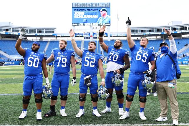 DALLAS — The Kentucky football team is this week’s nominee for the 2020 Capital One Orange Bowl-FWAA Courage Award. The Wildcats beat Vanderbilt, 38-35, on Saturday, just two days after offensive line coach John Schlarman died after a two-year battle with cancer.