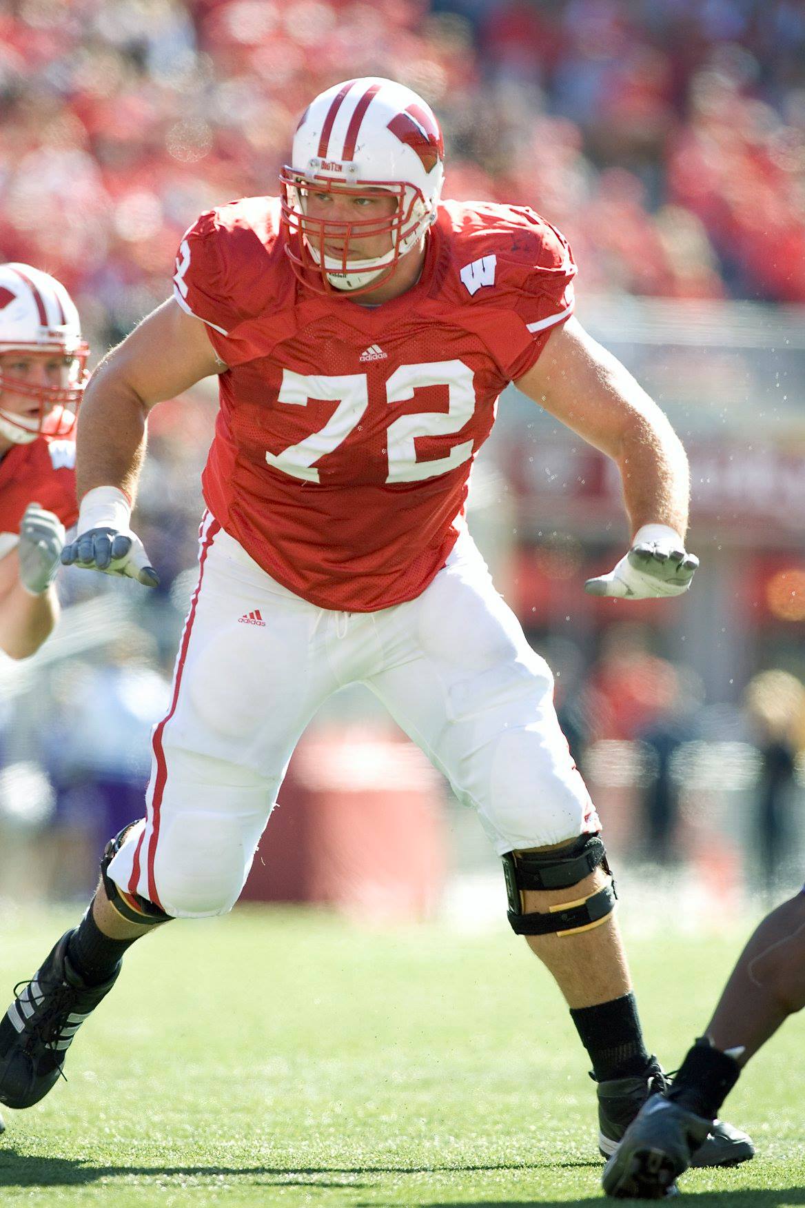 He practiced there most of his freshman year. He played a little that season, occasionally pulling a No. 82 jersey over his regular No. 72 so that he could line up as a second tight end in Wisconsin’s Jumbo Offense.