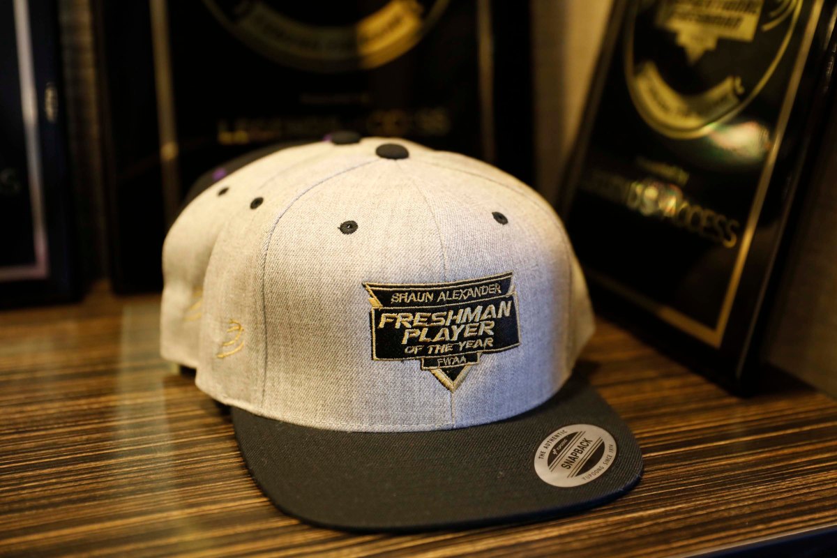 breakfast12 Published January 21, 2019 at 3600 × 2401 Shaun Alexander/FWAA Freshman of the Year hat. (Photo by Melissa Macatee)