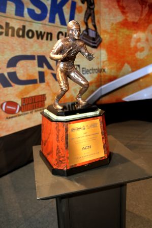 Bronko Nagurski Day 12-7-2015 2010 Published January 6, 2016 at 299 × 450 The Bronko Nagurski Trophy, presented annually since 1993 by the Football Writers Association of America to the best defensive player in college football. Photo by Ron J.Deshaies/Treasured Events of Charlotte.