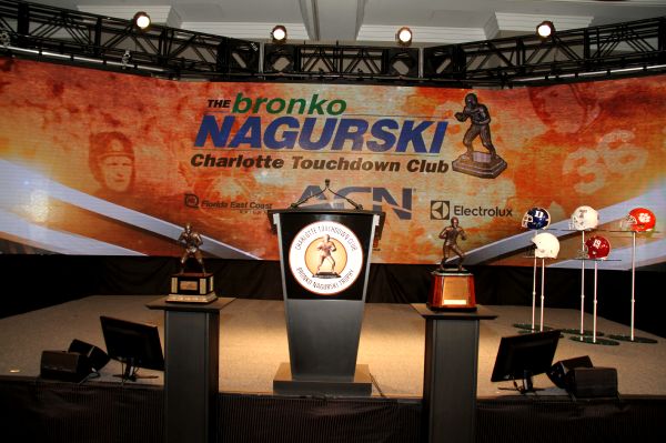 Bronko Nagurski Day 12-7-2015 274 Published January 6, 2016 at 600 × 399 The stage is set for the presentation of the 2015 Bronko Nagurski Trophy. Photo by Ron J.Deshaies/Treasured Events of Charlotte.