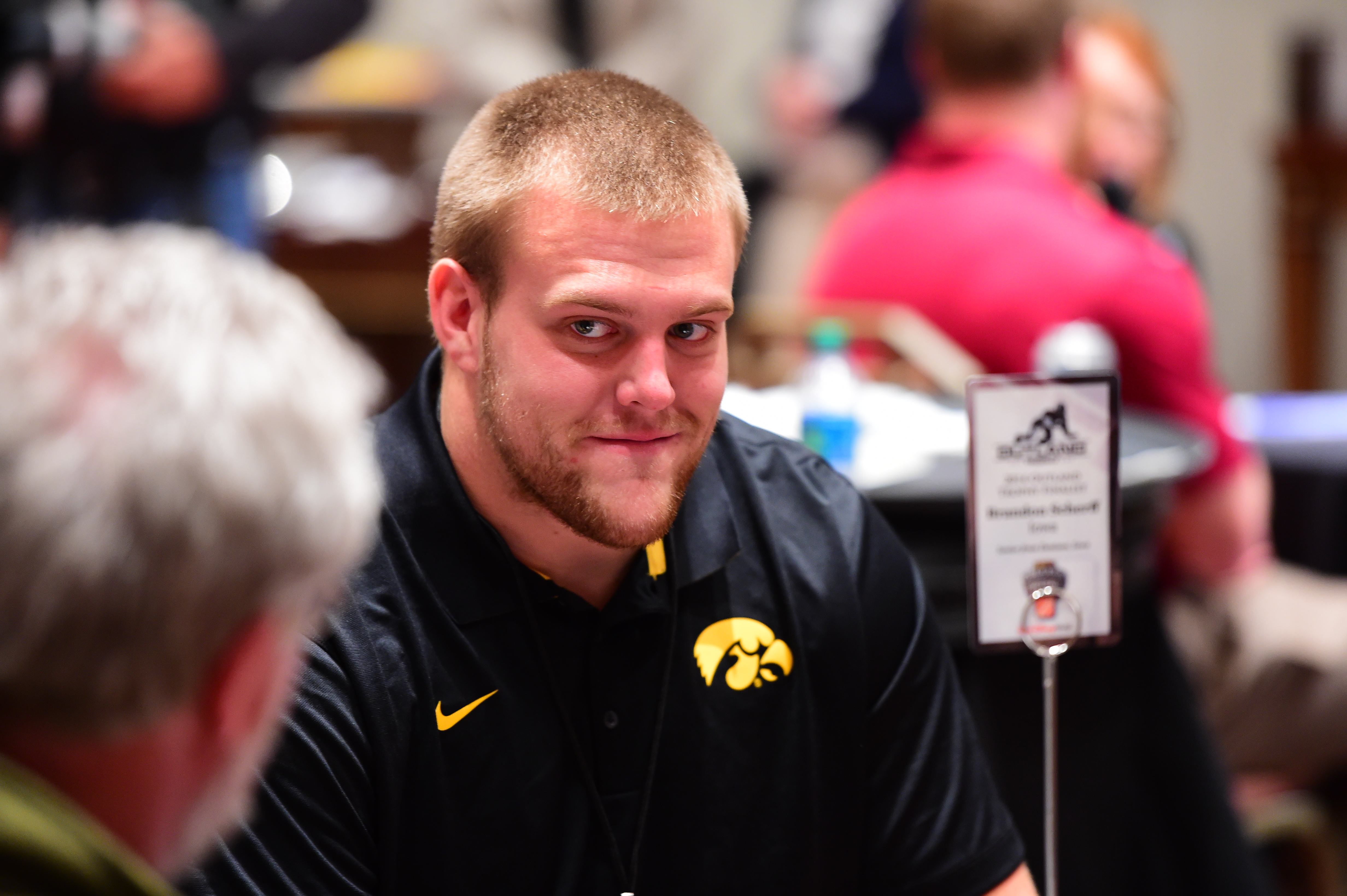Outland Winner Brandon Scherff of Iowa being interviewed before he won the award in Orlando.