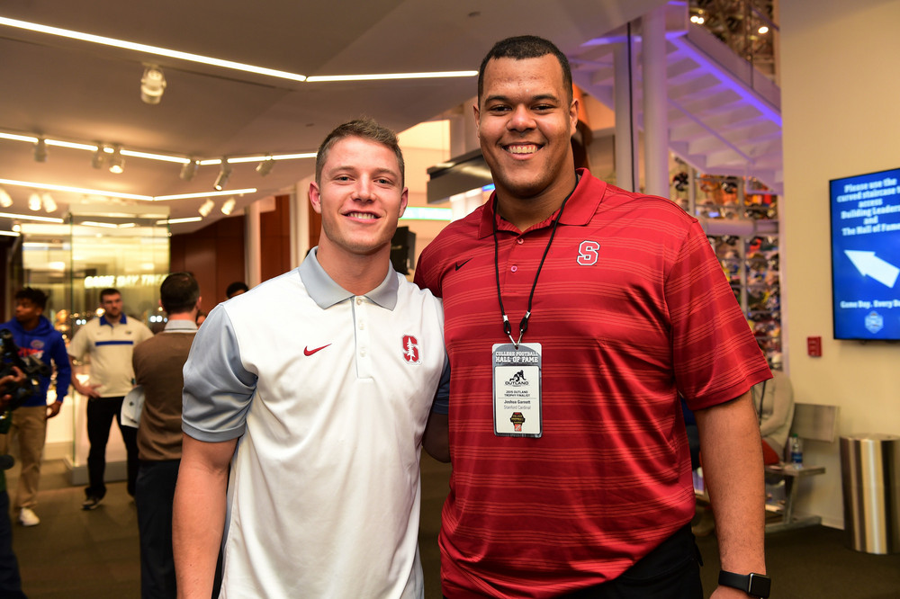 College Football Awards Media Availability – December 9, 2015 Published December 20, 2015 at 1000 × 666 Stanford running back Christian McCaffrey joined teammate and 2015 Outland Trophy winner Joshua Garnett during the media availability before the awards show at the College Football Hall of Fame. (Photo by Phil Ellsworth / ESPN Images)