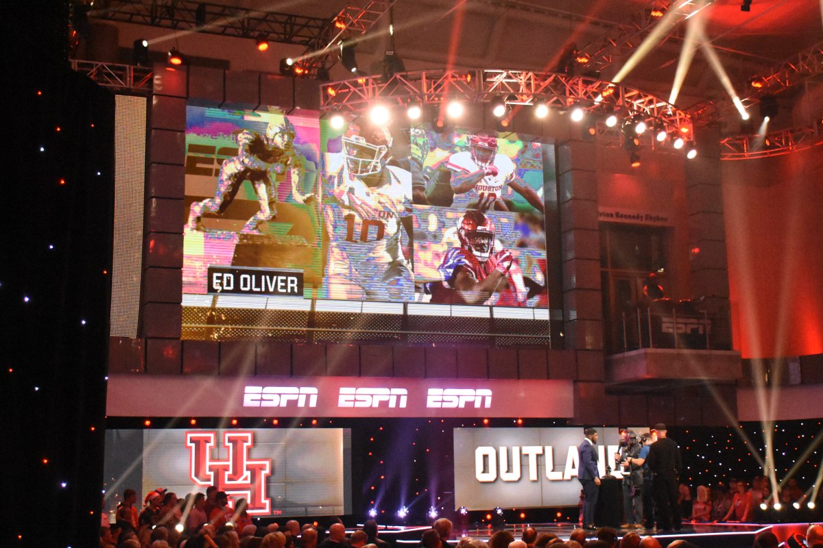 DSC_5340 Published December 11, 2017 at 4800 × 3200 The stage is set for 2017 Outland Trophy winner Ed Oliver of the University of Houston at the College Football Awards Show. Photo by Andy Crawford.