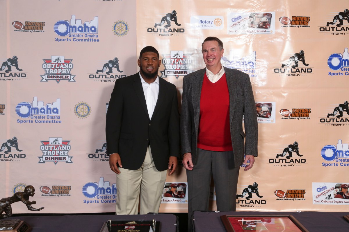 ed oliver and 1971 outland winner Larry Jacobson from Nebraska Published January 20, 2018 at 4898 × 3265 2017 Outland Trophy winner Ed Oliver of Houston with 1971 winner Larry Jacobson of Nebraska. C41Photography.
