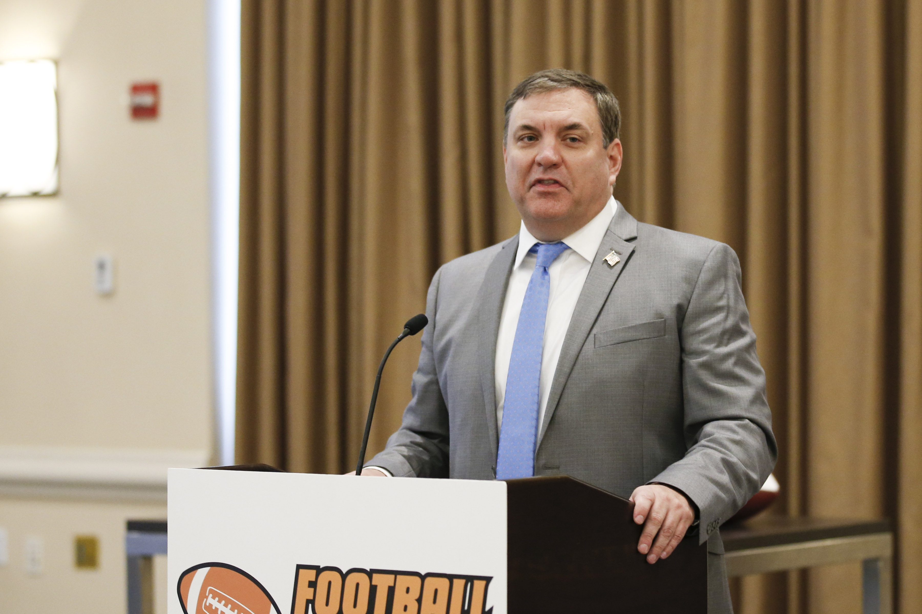 FWAA Awards Breakfast 97 Published January 23, 2020 at 3600 × 2398 Mike Griffith announced the FWAA/Shaun Alexander Freshman All-America Team. (Photo by Melissa Macatee)