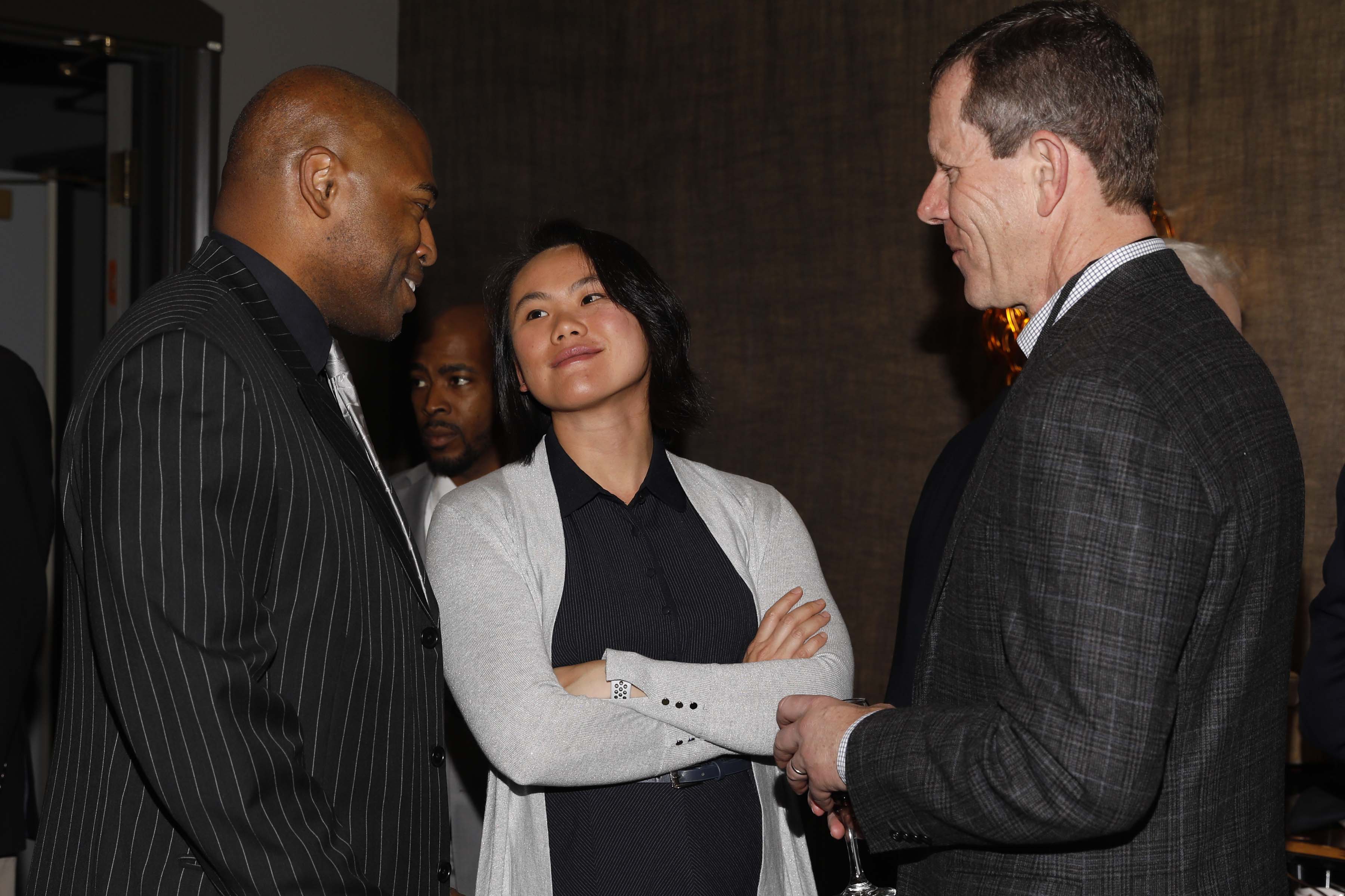 past9 Published January 21, 2019 at 3600 × 2400 (L-R) Shaun Alexander, Stef Loh and Ivan Maisel. (Photo by Melissa Macatee)