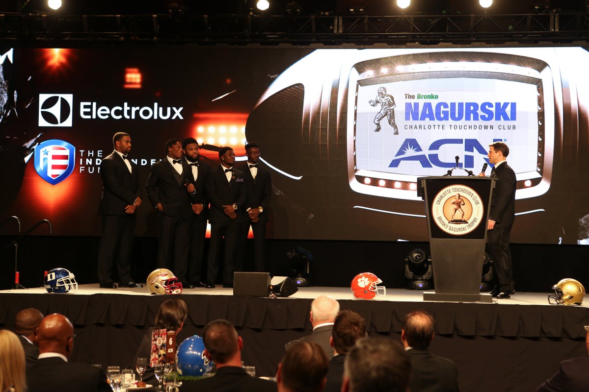 ssi_8882-finalists-on-stage Published December 12, 2016 at 3600 × 2400 The five finalists for the 2016 Bronko Nagurski Trophy assembled on stage. (Photo by Michael Strauss, Strauss Studios.)